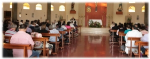 Los domingos, cuando no hay sacerdote, una de las hermanas dirige la celebración de la Palabra con la Comunidad cristiana.